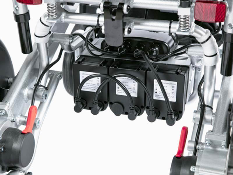 Die Vorderräder bestehen aus pannensicheren PU und die Hinterreifen entweder aus PU- oder Luftreifen. Die maximale Steigfähigkeit beträgt 25 %, was für einen Elektrorollstuhl in dieser Produktgruppe einzigartig ist.